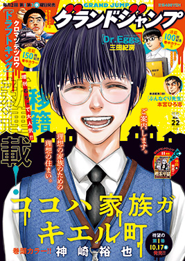 グランドジャンプ No.22 大好評発売中!表紙&巻頭カラー「ココハ家族ガキエル町」 巻中カラー「ドラフトキング」 巻中カラー「Dr.Eggs ドクターエッグス」